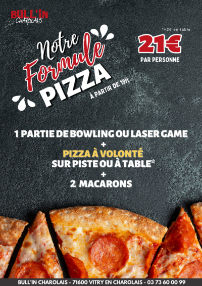 Formule enfant : 1 bowling ou Plaine de jeux + 1 petite pizza jambon fromage = 12€/enfant (+2€ en table)